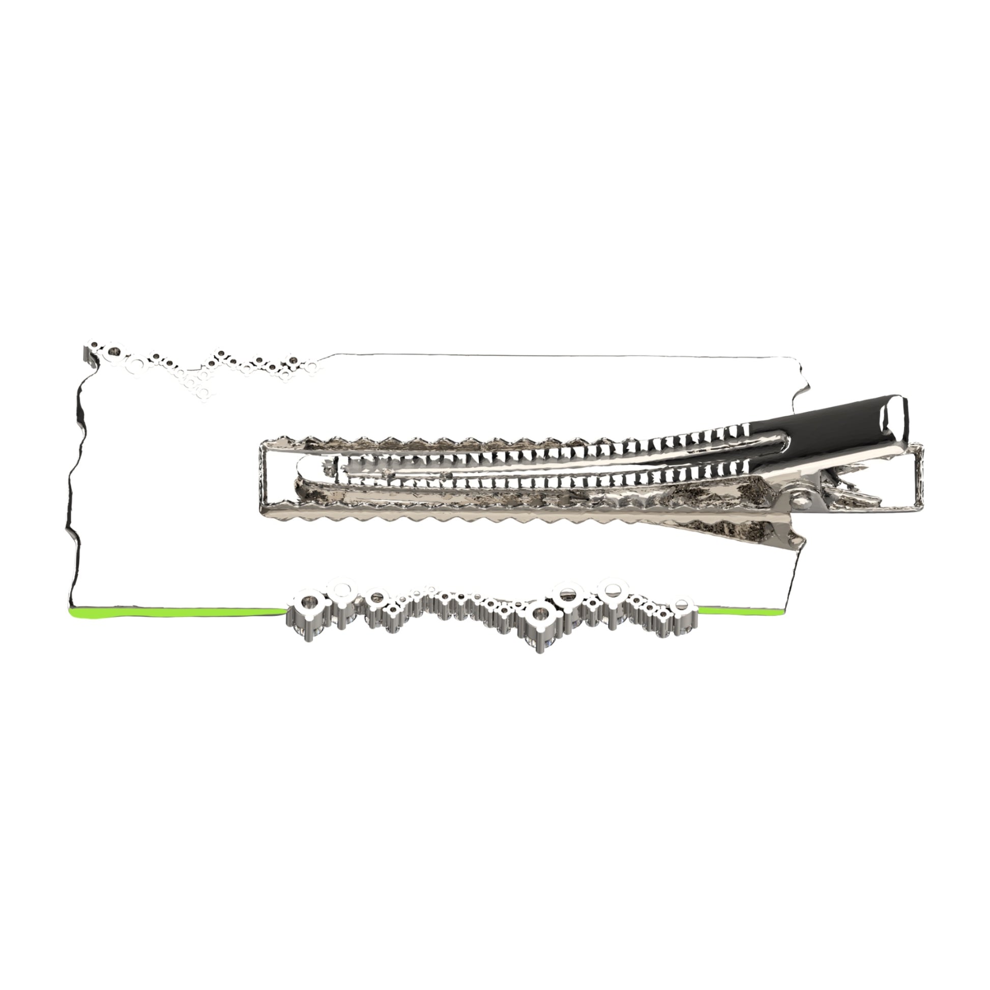 -This design is the entry ticket to the 24/7 ANONYM Alien Laboratory. It features a textured design resembling crumpled paper, combined with an exquisitely delicate enamel and a shattered edge effect on the paper-like metal. It can be used as a hair clip, collar accessory, or bag accessory