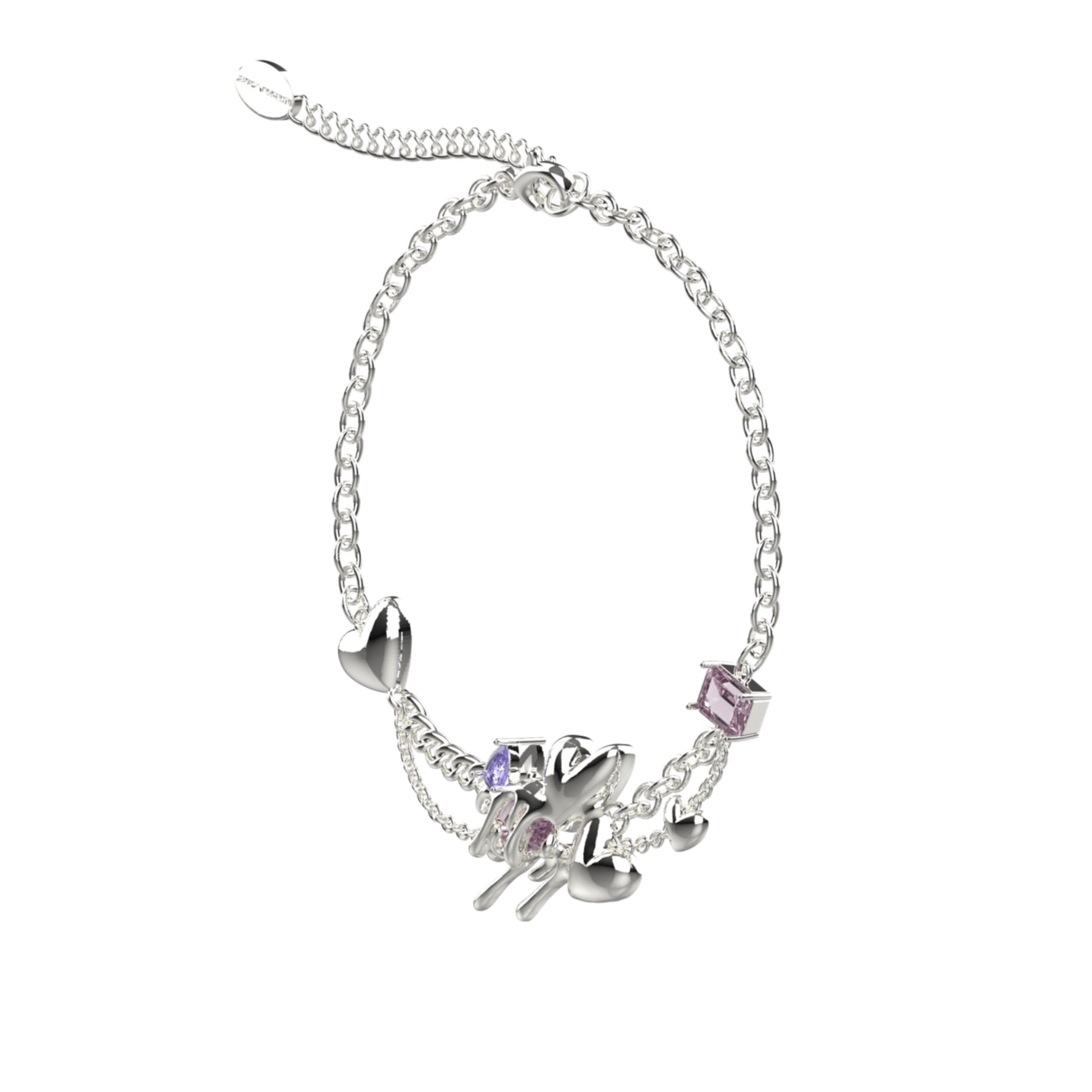-We combine the floating form of a set of heart-shaped balloons, magnifying the memories of the floating balloon at the amusement park. We hide the gemstone behind the flowing metal as our designer's concept "Whisper to the balloon and let the balloon keep your secret"