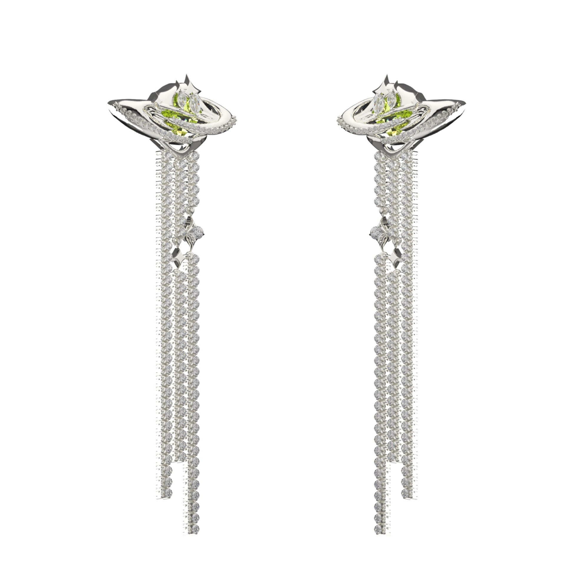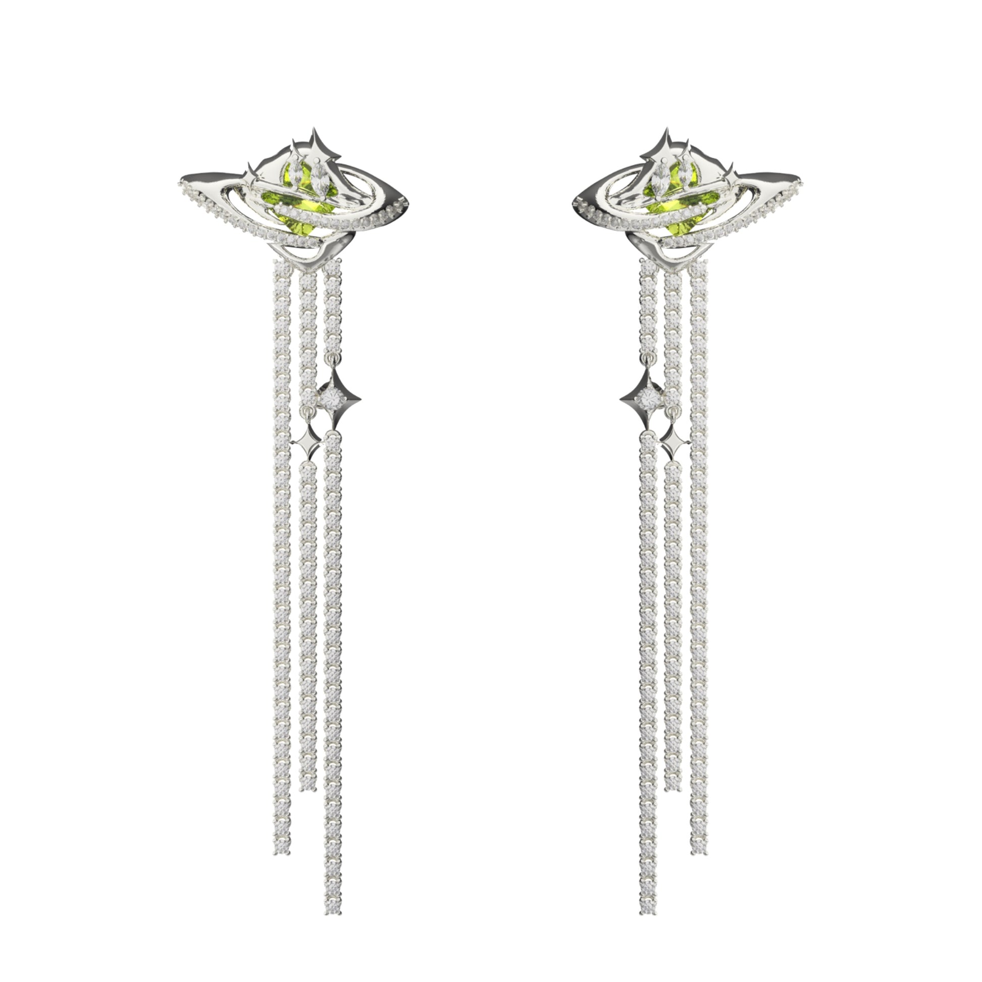 -Tennis chain tassels design, the UFO Earrings miniaturize the presence of abandoned spaceship wreckage, serving as the sole symbol of contact with extraterrestrial life when worn on the ears.