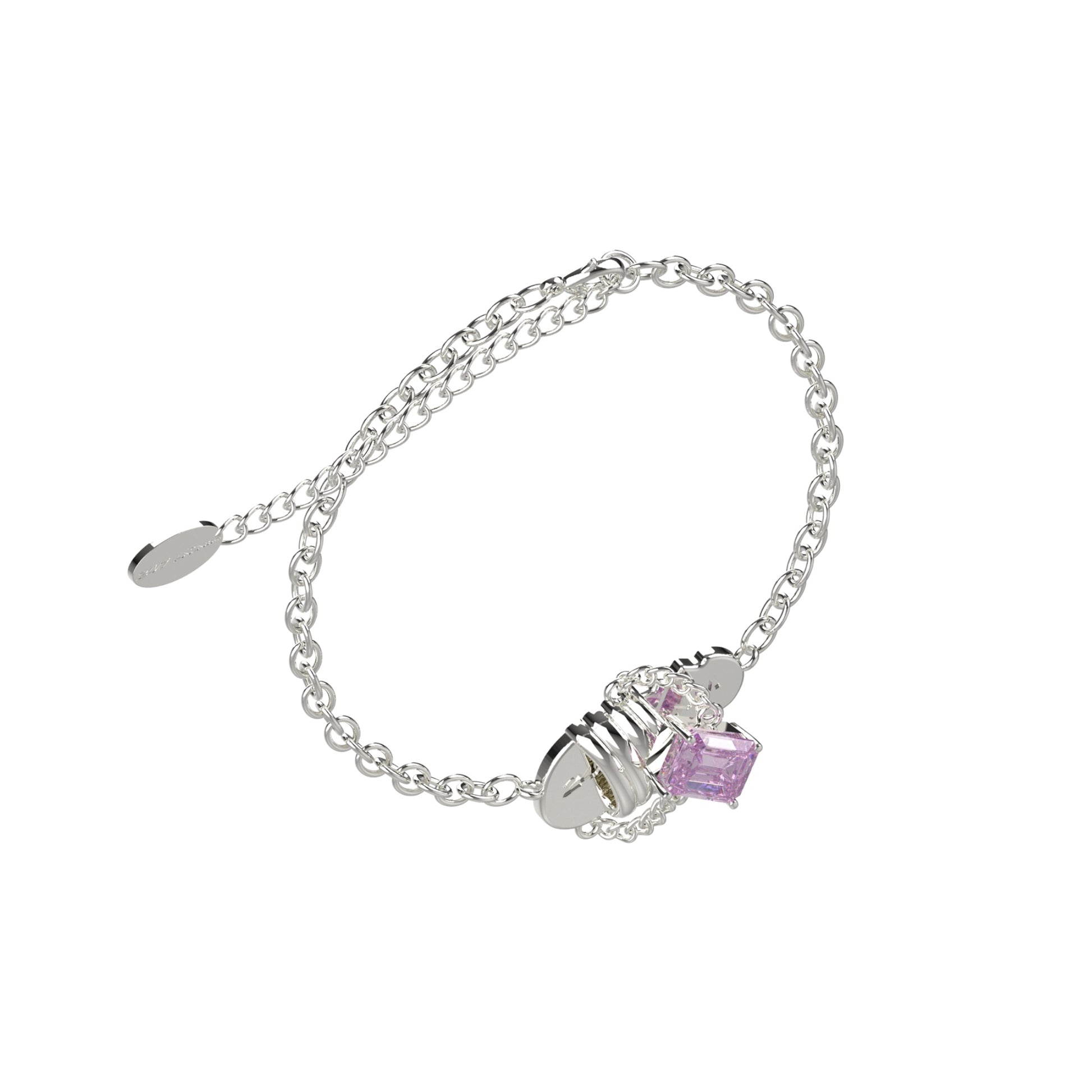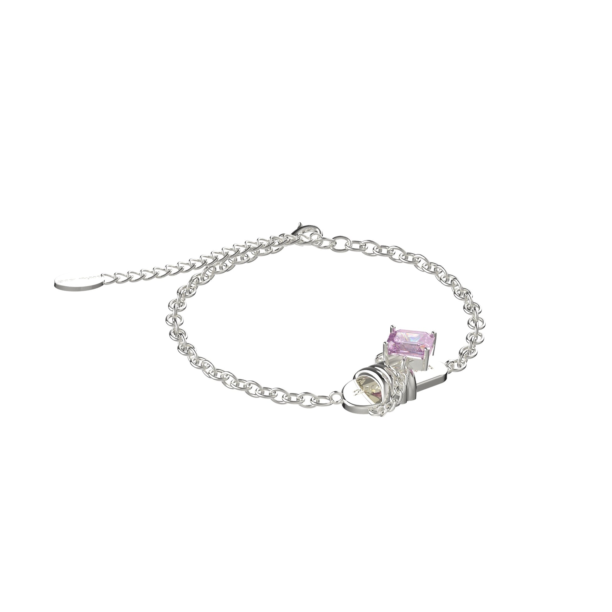 -A complete single simulated pool slipper, featuring an inflated stripe texture paired with the 24/7 ANONYM brand logo engraved on the inner sole. The chain on top of the slipper is inlaid with pink zircon, allowing for agile movement.