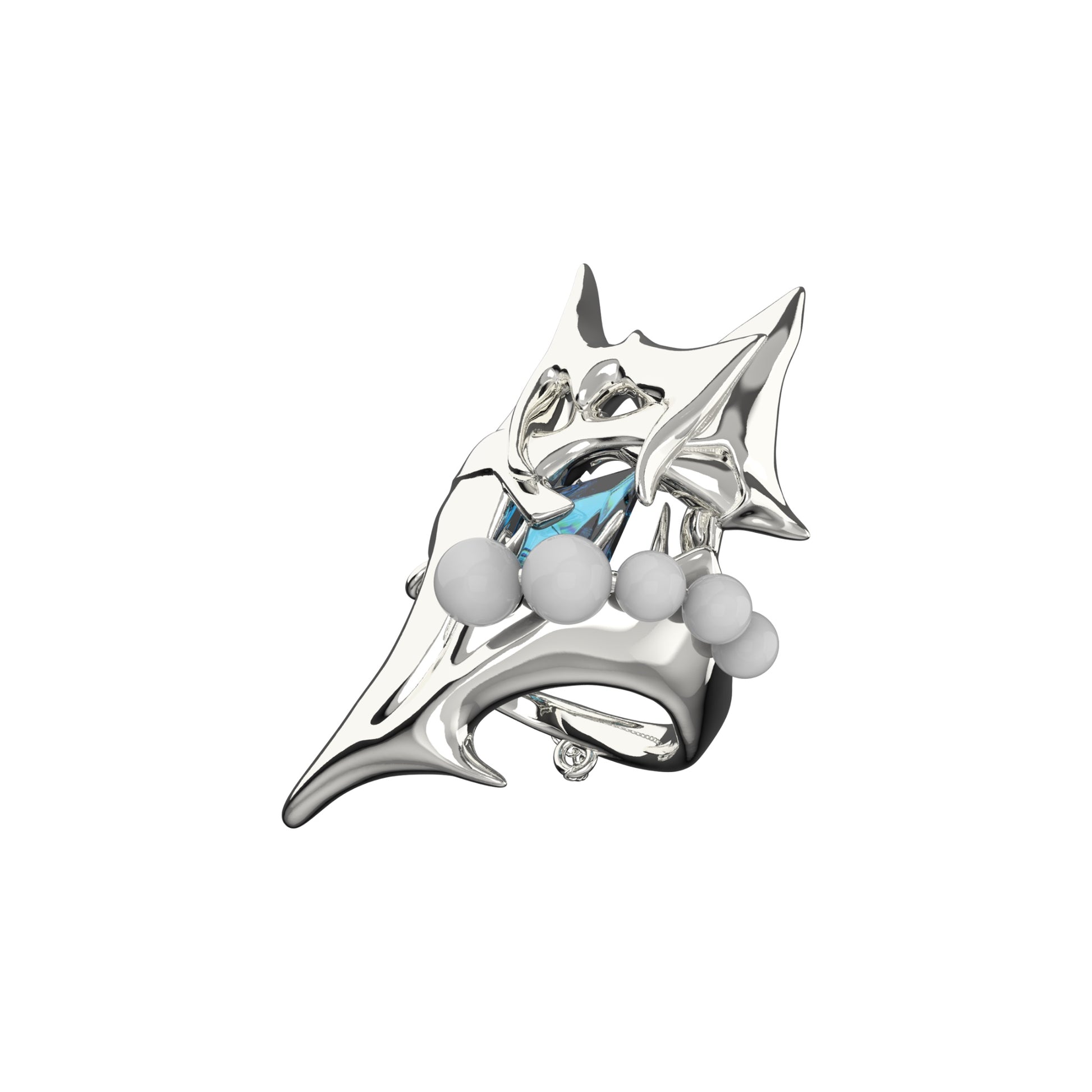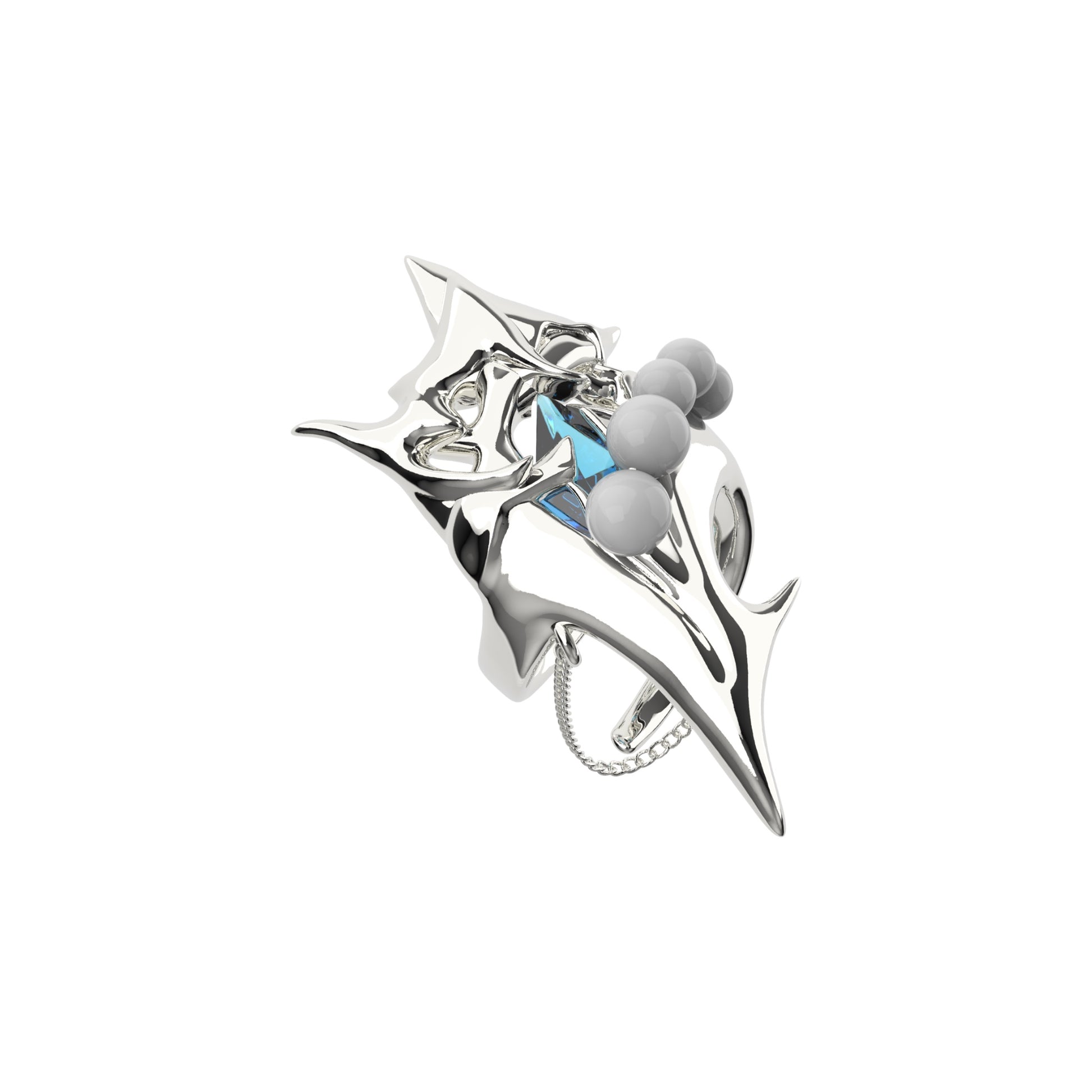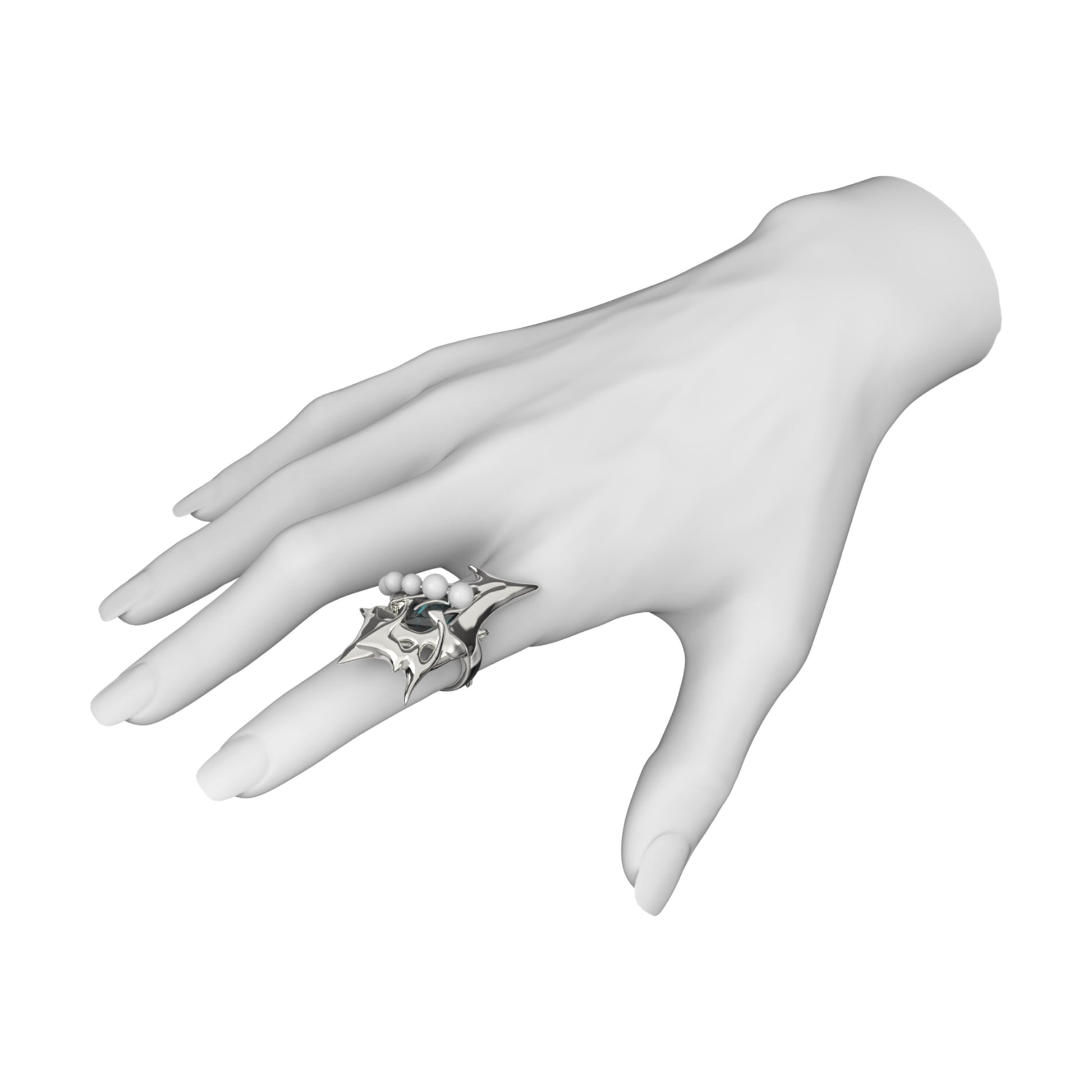 -The Finger ARMOUR RING is the mini wearable armour of this series, with surging virtual energy spreading among the finger joints. The pearl floating above the finger can freely adjust its shape. This open-end ring interlocks around the fingers with an adjustable size within a small range, it is easy to fit most finger sizes. Logo engraved at inner band.